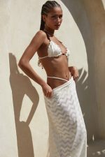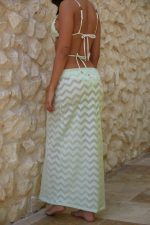 חצאית חוף מושלמת מקולקציית זיגזג. קשירות פנימיות ארוכות. אפשר לקשור אותן כלפי מעלה כמו בתמונות או בתוך החצאית כך שלא רואים אותן.